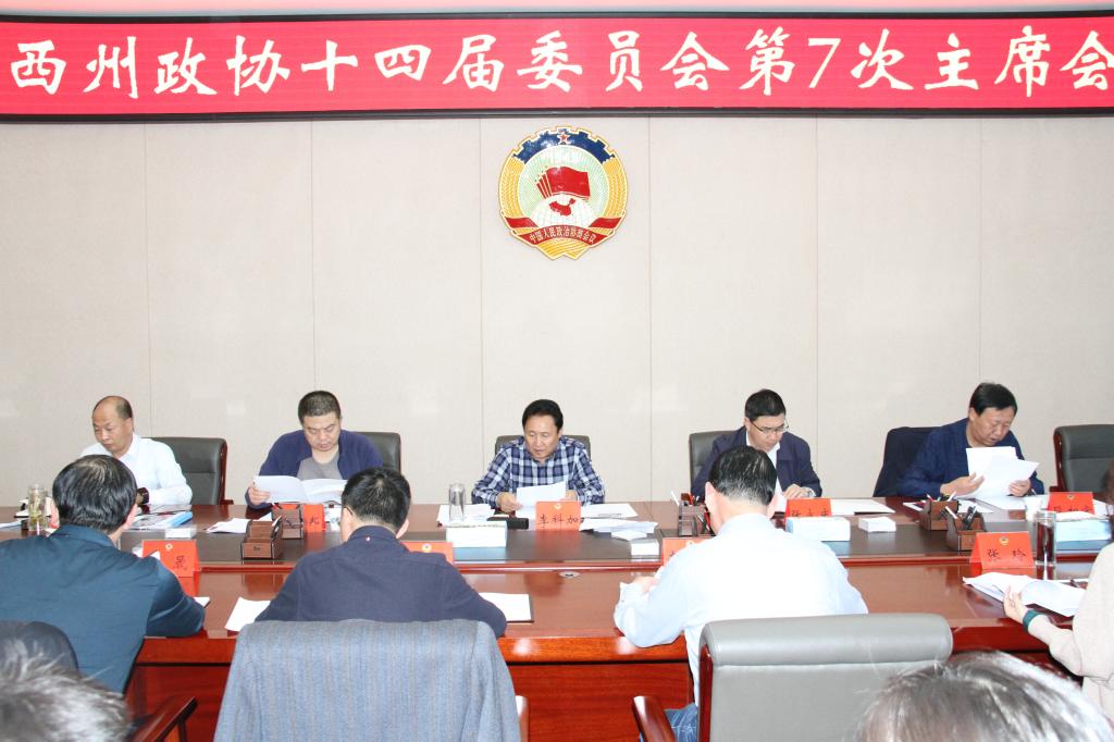 3月15日,海西州政协召开十四届委员会七次主席会议?;嵋橛芍菡匙槭榧?、主席李科加主持,主席会成员张永庆、张亚邦、段相宏、李增武、洪景学出席会议,州政协各专委会主任,各副秘书长,各科室负责人列席会议。