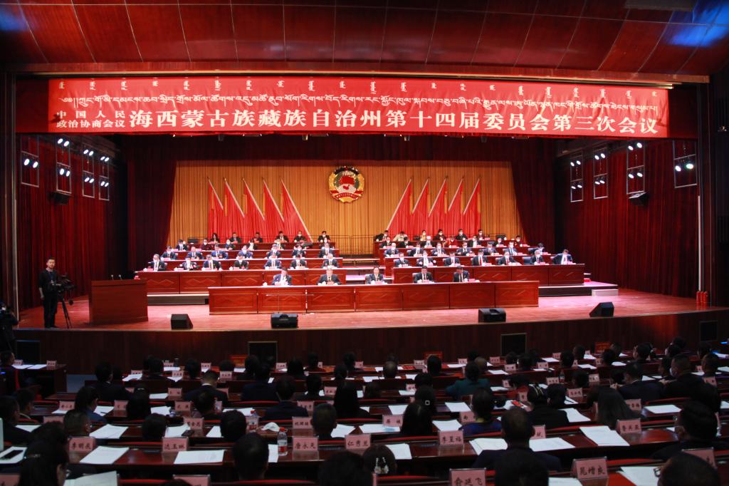 2月23日下午,中国人民政治协商会议海西蒙古族藏族自治州第十四届委员会第三次会议圆满完成各项议程,在新区海西会议中心胜利闭幕。