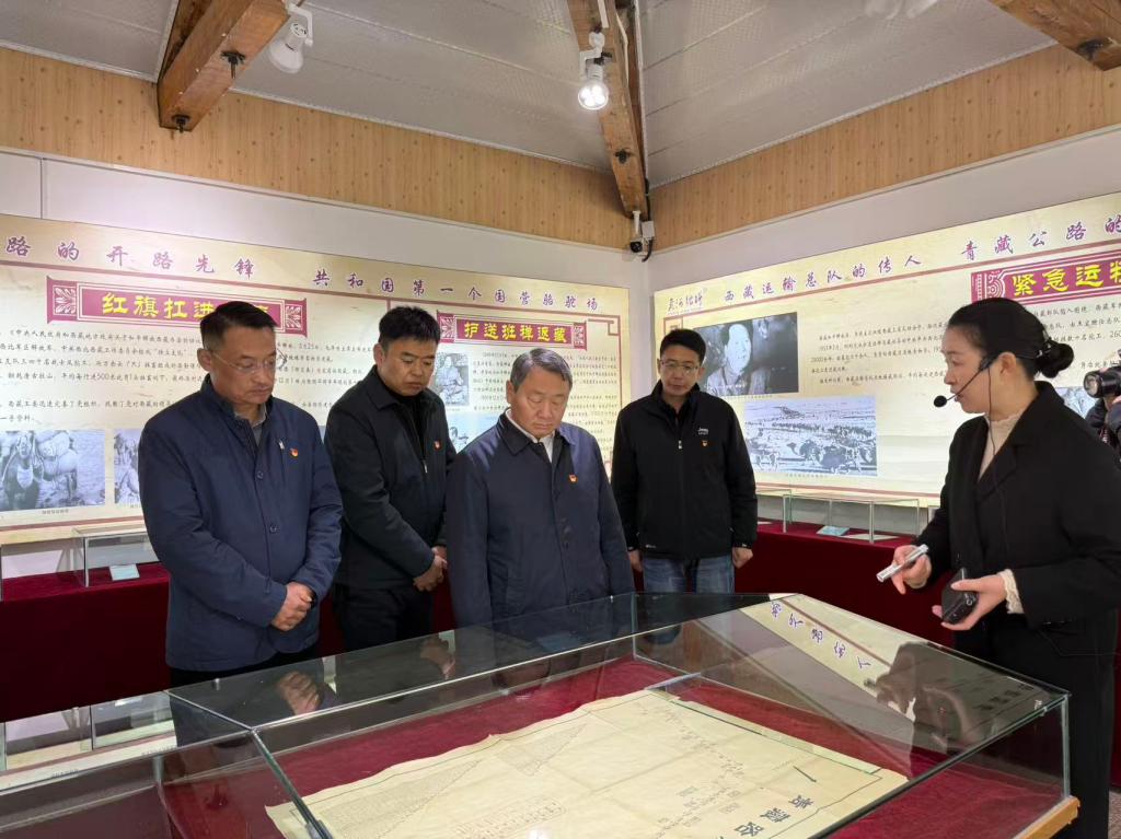 活动现场,全体党员干部面向党旗重温入党誓词,庄严的宣誓声铿锵有力,进一步强化了党员的身份认同、宗旨意识与责任担当。随后,大家走进青藏驼队历史博物馆,通过实物展品、文字史料、影像资料,直观了解青藏驼队的发展历程。在驼工礼堂集中观看“进藏驼队”纪录片,沉浸式感受驼队队员不畏艰险、艰苦奋斗的精神。实地探访驼队旧址,追寻红色足迹,深刻感悟青藏驼队红色基因的精神内涵与时代价值。
