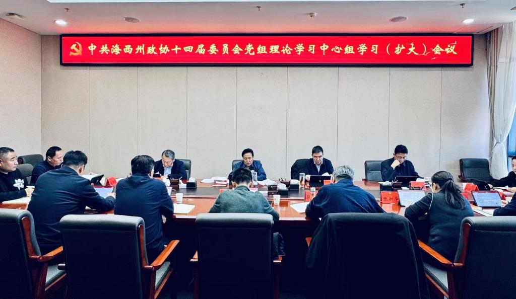 11月12日,海西州政协召开党组理论学习中心组学习(扩大)会议,围绕学习贯彻党的二十届四中全会精神开展学习研讨,州政协党组理论学习中心组各成员参加会议,党外副主席、机关党组成员、副秘书长、各专委会主任列席会议。