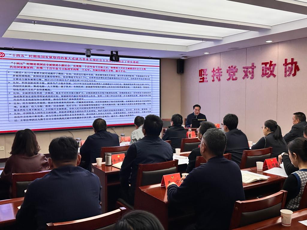 为深入学习贯彻党的二十届四中全会精神,切实把思想和行动统一到党中央决策部署上来,11月26日,州政协邀请州委宣讲团成员李云涛同志宣讲党的二十届四中全会精神。州政协党组书记、主席李科加,副主席张永庆、段相宏、田云见,秘书长张卫东,德令哈市政协副主席李积询及州市政协机关干部职工共31人参加宣讲会。